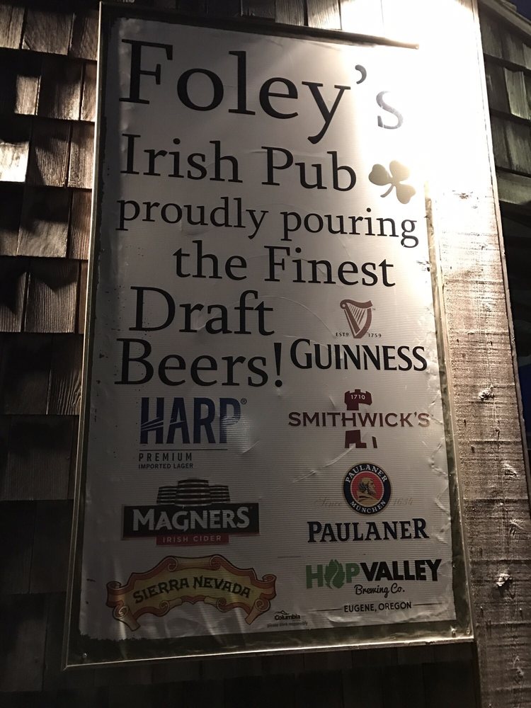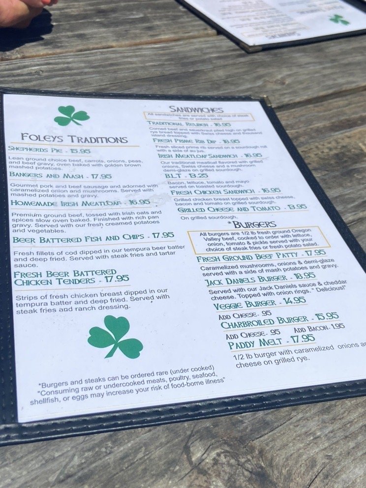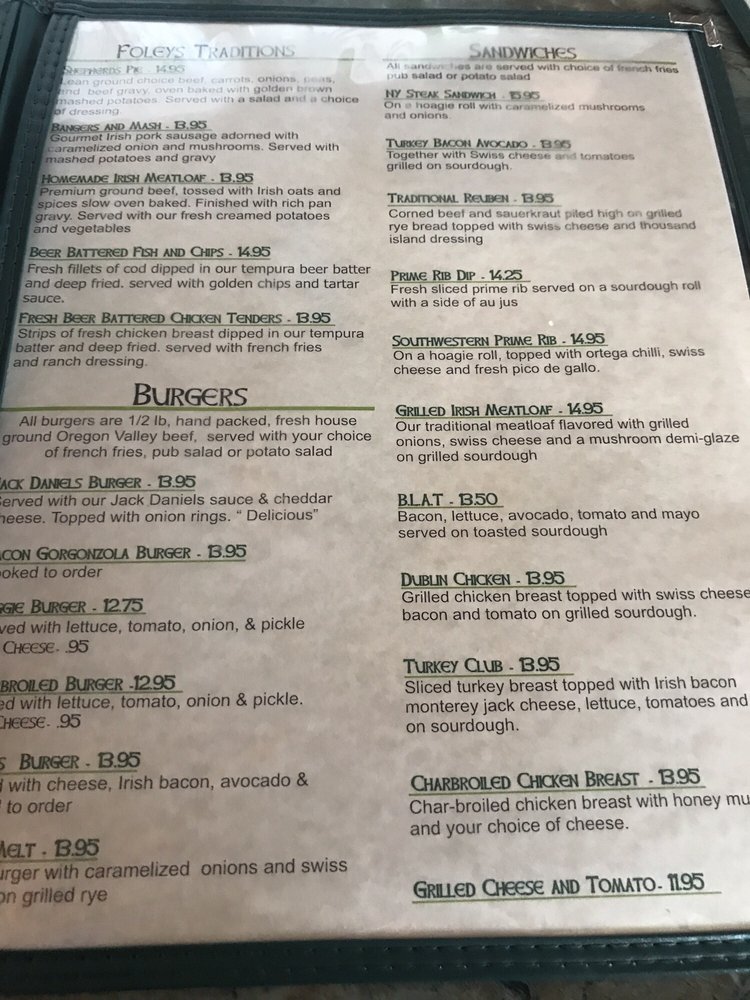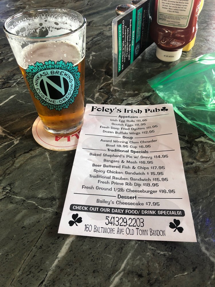 Foley's Irish Pub in Bandon, Oregon, offers a warm and inviting atmosphere for enjoying traditional Irish cuisine and watching sports on their large screen TVs. The menu features dishes like fish and chips, burgers, meatloaf, and starters like scotch eggs and onion rings. Customers rave about the friendly staff, cold draft beer, and consistent quality of the food. The pub also offers happy hour from 3-5pm, making it a popular spot for locals and visitors alike. With amenities such as outdoor seating, free Wi-Fi, and a full bar, Foley's Irish Pub is a great choice for a casual dinner or meeting up with friends.