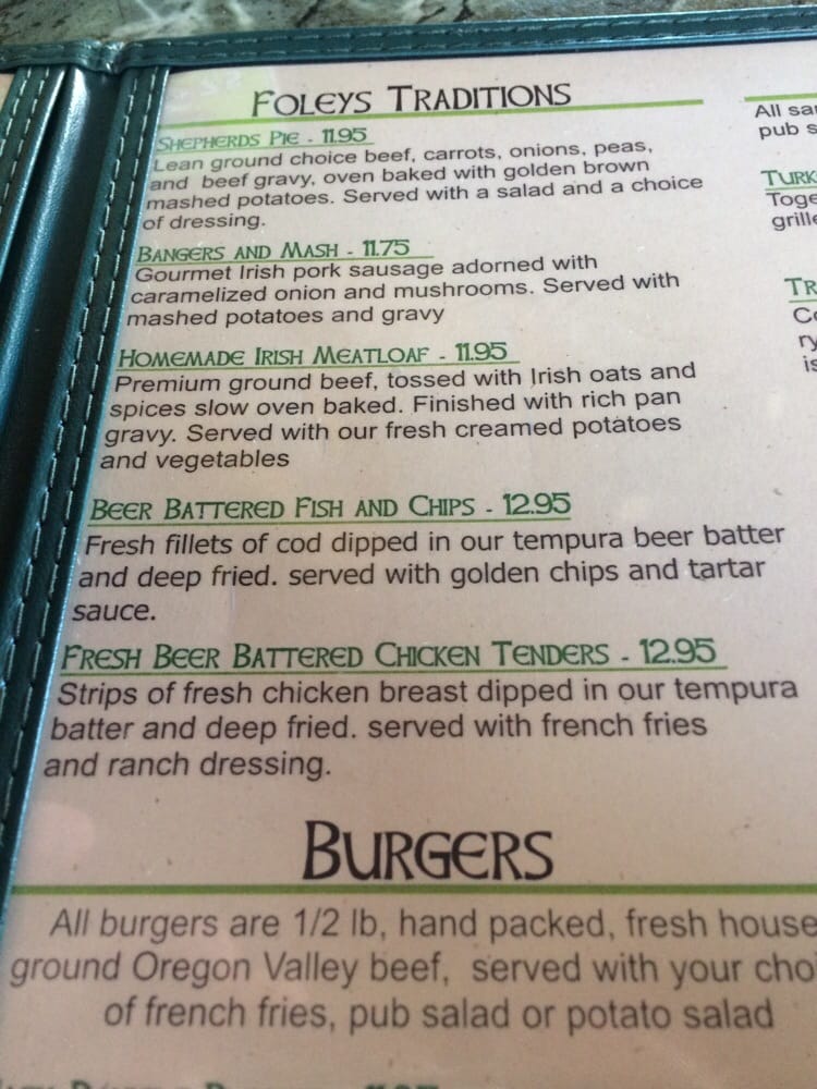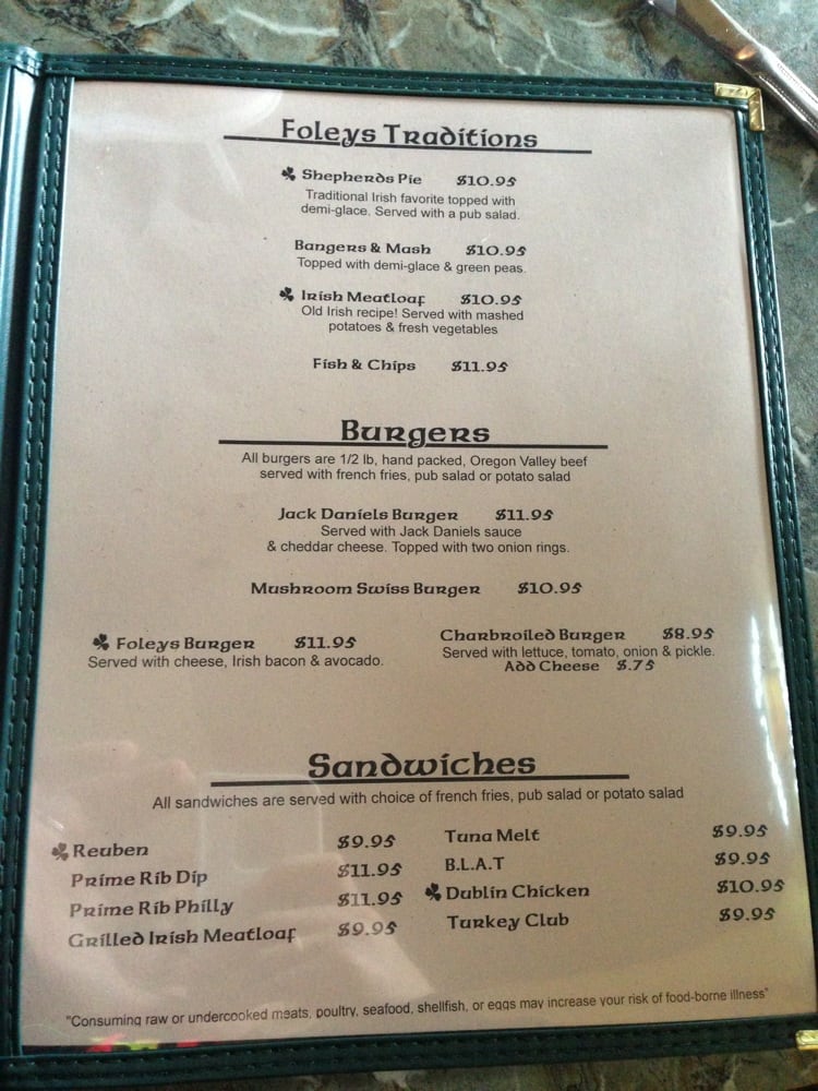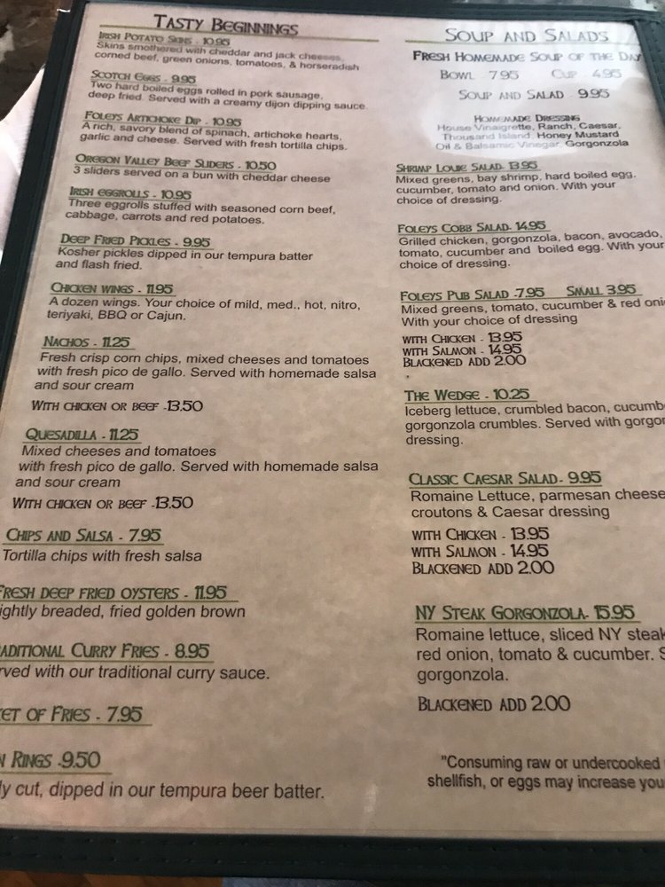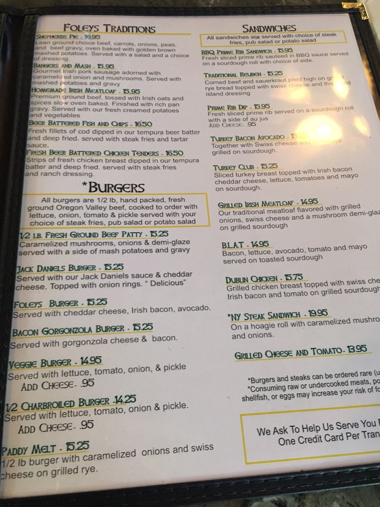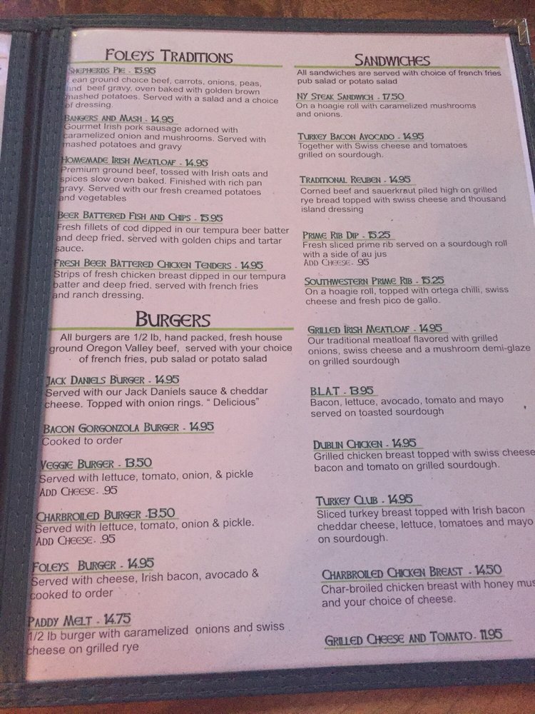 Foley's Irish Pub in Bandon, Oregon, offers a warm and inviting atmosphere for enjoying traditional Irish cuisine and watching sports on their large screen TVs. The menu features dishes like fish and chips, burgers, meatloaf, and starters like scotch eggs and onion rings. Customers rave about the friendly staff, cold draft beer, and consistent quality of the food. The pub also offers happy hour from 3-5pm, making it a popular spot for locals and visitors alike. With amenities such as outdoor seating, free Wi-Fi, and a full bar, Foley's Irish Pub is a great choice for a casual dinner or meeting up with friends.